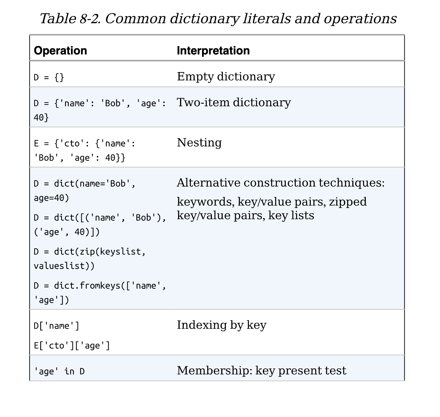 字典 | 第二部分 类型与操作 —— 第 4 章: 介绍 python 对象类型 |《学习 python:强大的面向对象编程(第 5 版)》| python 技术论坛-江南app体育官方入口