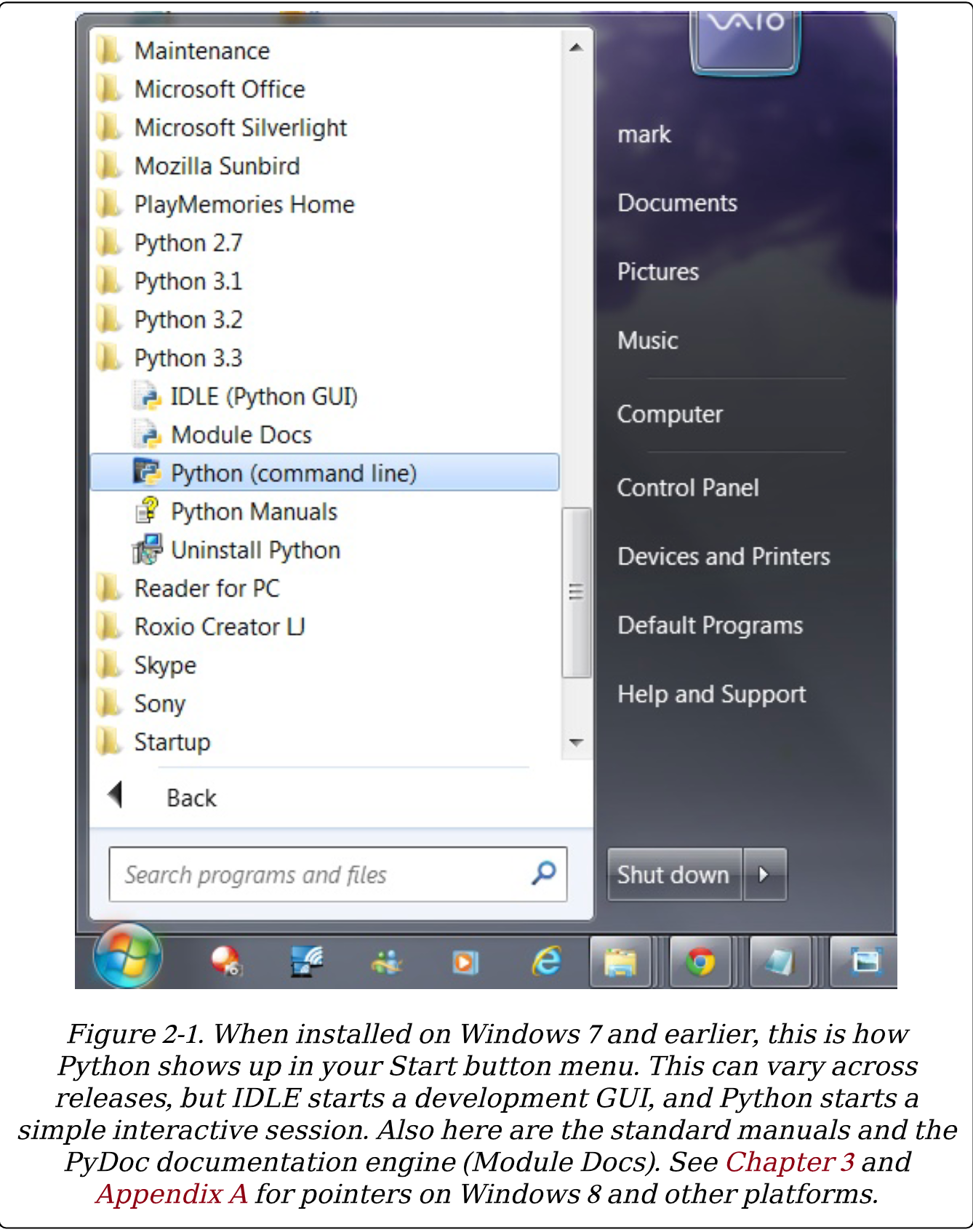 python 本身可以从它的上的下载页获取。它还可以在其他许多分发渠道获取。记住在安装它之前应该先检查一下它是否已经存在。如果你使用 windows 7 或者更老的电脑上。你将会发现 python 已经在开始目录里了。